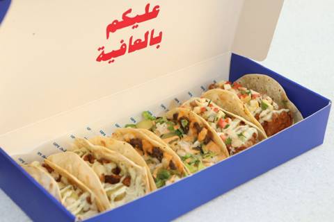 Chicken grill taco, burger taco, drinks & more